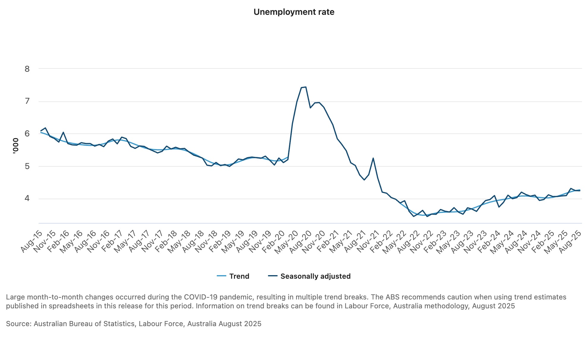 Around the country, South Australia posted the highest unemployment rate at 4.9%, while Tasmania held the lowest at just 3.2%. The ACT saw the sharpest shift, climbing from 3.9% in July to 4.7% in August.